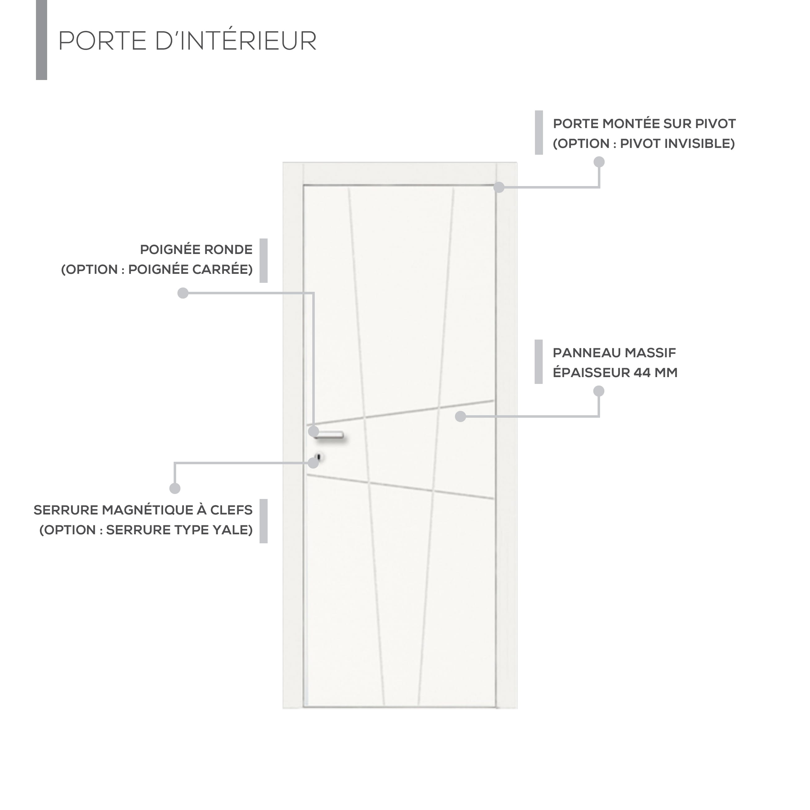 Cette porte battante pleine séduit par son design graphique original. Les rainures obliques et croisées créent un motif moderne et dynamique, idéal pour apporter une touche décorative subtile sans alourdir l’espace.