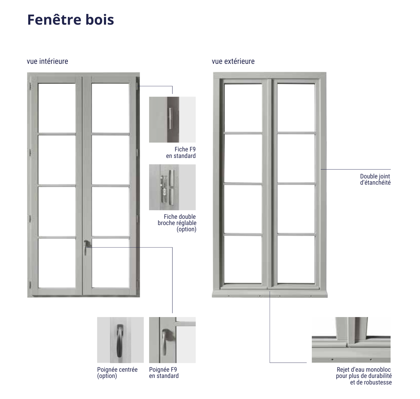 Grâce à sa structure en carrelet 3 plis de 59 mm, sans aboutage sur les parements, et à son assemblage mécanique haute précision, cette menuiserie assure une finition haut de gamme et une étanchéité optimale.