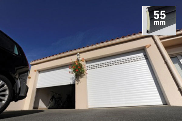Si vous possédez un garage de petite taille et que votre espace est limité, pensez à la porte de garage enroulable de 55 mm, discrète et intégrable facilement.